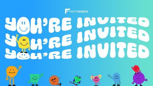We can't wait to see you for our annual You're Invited series at First Church! Jesus never intended for His church to be something boring, irrelevant, or dull. He's given us His joy, and we're called to be a community where the joy of Heaven meets the sadness of earth. Every Sunday during this series, we're throwing a party with a special theme that you can invite your friends and family to experience. We've got a lot of extra stuff planned as we point people to the life Jesus wants to give them! You're not going to want to miss a single week in this series, as we worship, hear a message of hope, and celebrate the Good News of Jesus together. It's going to be a lot of fun, and everyone's invited!